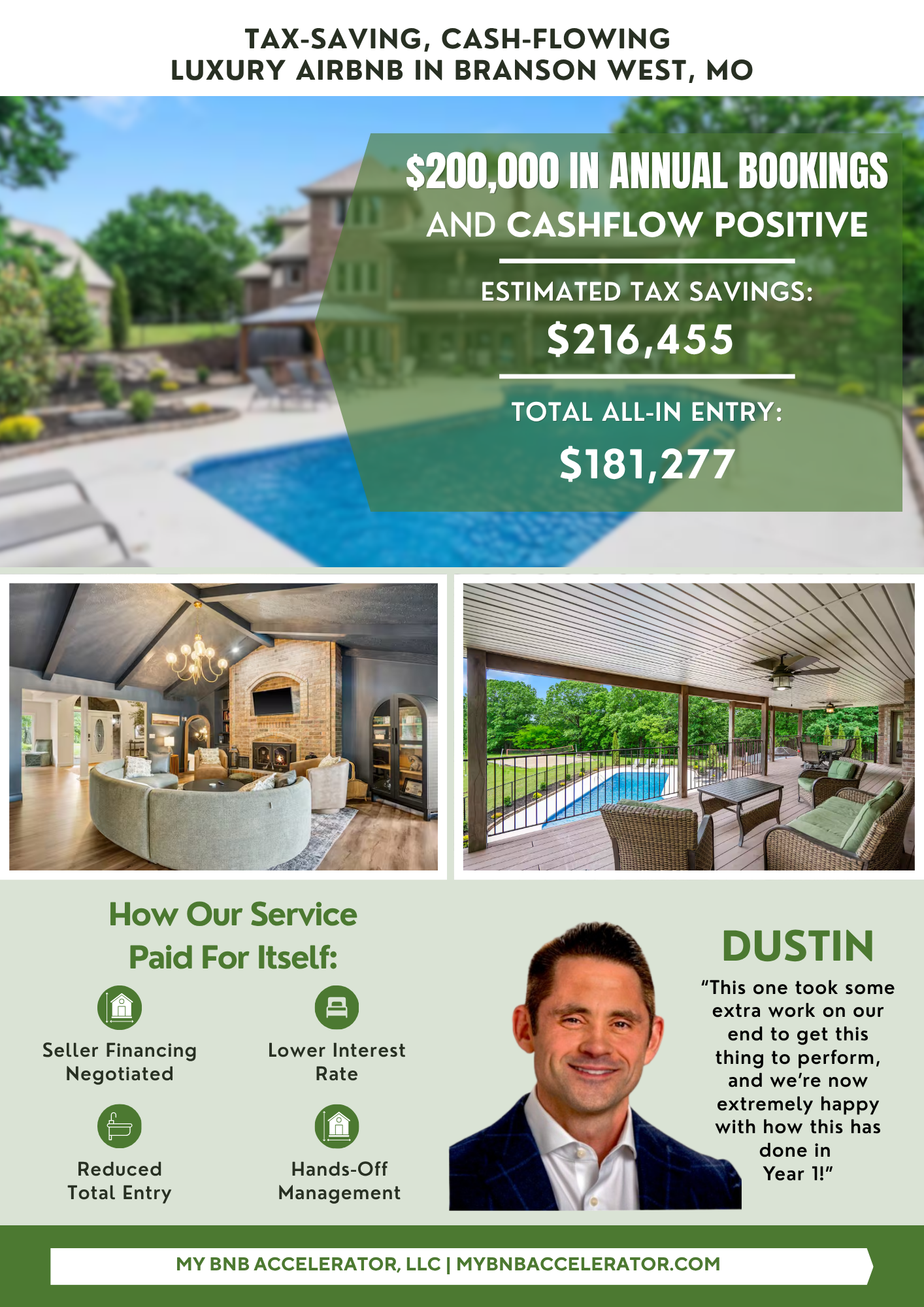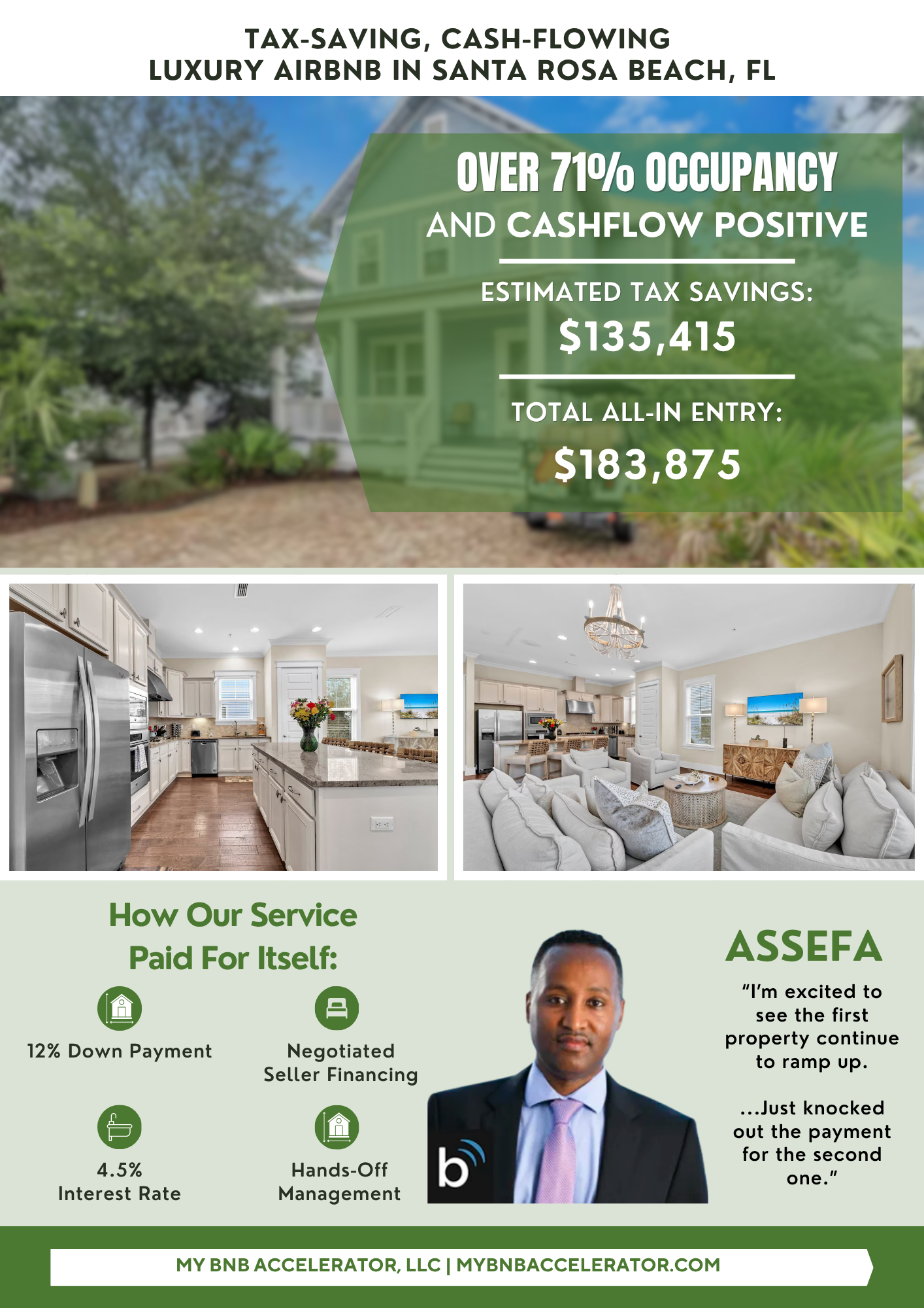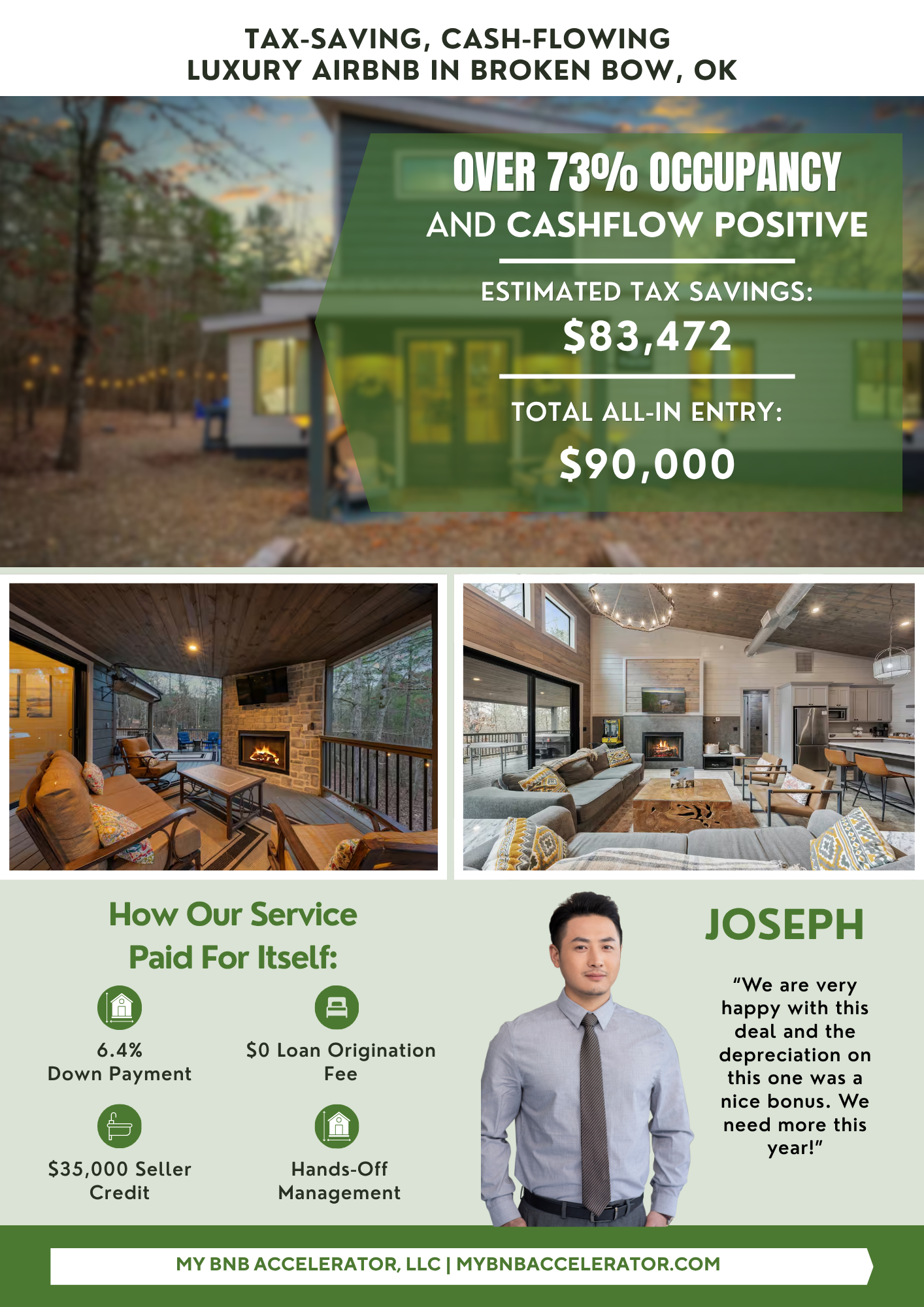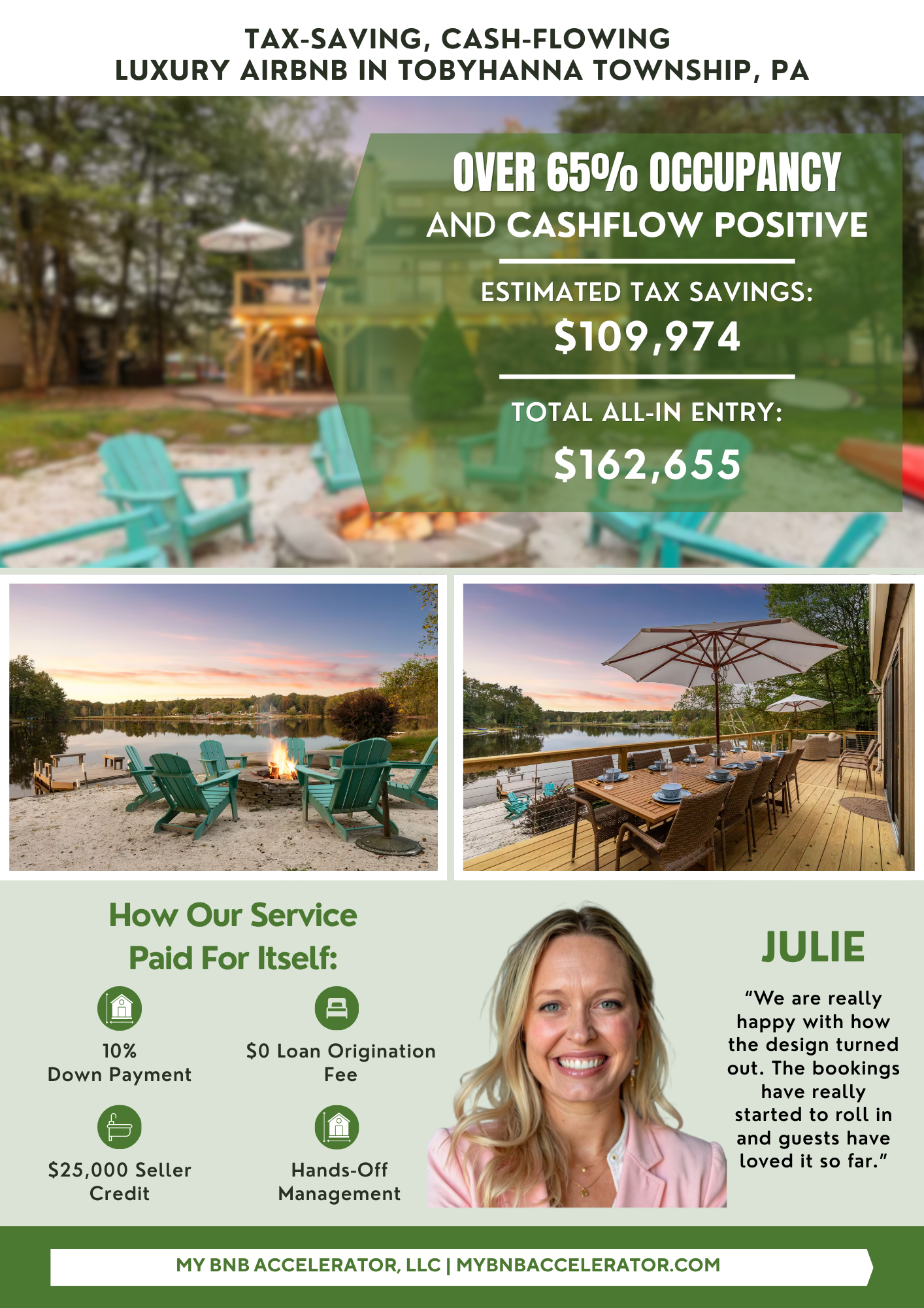 We (My BnB Accelerator, LLC) are not an attorney or legal counsel, nor does Company represent itself as such. Company does not provide any legal advice - Client must engage with proper Legal counsel with an outside third party for all matters related to legal counsel or legal advice. Company My BnB Accelerator, LLC is not a Certified Professional Accountant (CPA) or Tax Advisor, nor does Company represent itself as such. Company does not provide any Tax advising. Client must engage with proper Tax advising and Tax Strategy counsel with an outside third party for all matters related to Tax strategy, tax preparation, and bonus depreciation items. Company My BnB Accelerator, LLC works with their own third party tax advisors, Certified Professional Accountants, attorneys, lenders, and other specialty advisors that are all third party services. Client is ultimately responsible for verifying their work with any and all third party vendors not associated with the immediate My BnB Accelerator, LLC team. Please note that we may be affiliates of the vendors we recommend. You are absolutely under no obligation to use their products or services but if you do choose to use them, we may earn a small commission at no extra cost to you. The content in these videos and written content across these pages shall not be construed as tax, legal, insurance, construction, engineering, health & safety, electrical, or financial advice; it is your responsibility to verify all information yourself. It is highly recommended that you speak with a tax professional or tax attorney before performing any of the strategies mentioned in this video.